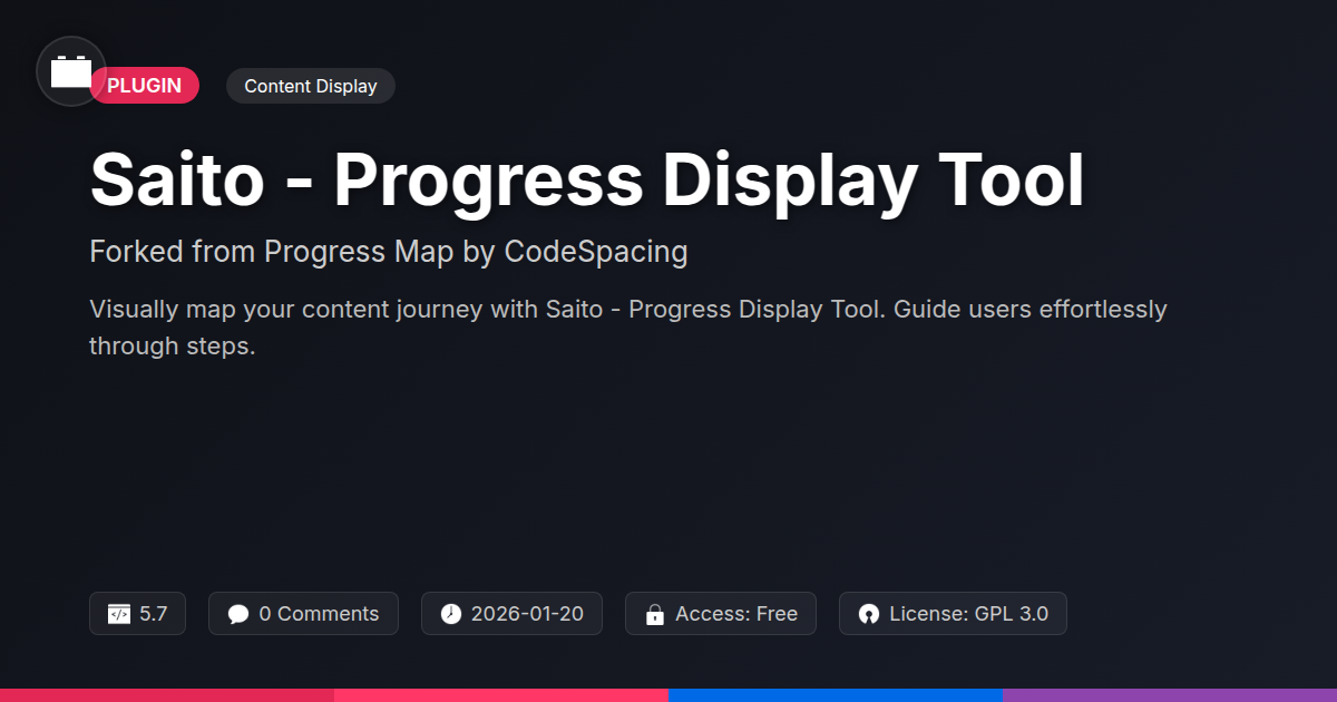 So, there you have it. If your current method of showing progress involves intricate code, cryptic documentation, or just a vague sense of hoping users don't get lost, it's time for an upgrade. Saito, built on a foundation of robust development and polished with a keen eye for user experience, is here to rescue your sanity and elevate your site’s design. It’s the visual roadmap your users have been craving, turning potentially dry sequences into engaging journeys. Forget the days of feeling like you’re painstakingly explaining a multi-step process with a single, uninspired sentence. With Saito, you’re not just presenting information; you’re crafting an experience. You’re giving users that satisfying sense of accomplishment as they tick off each stage, whether it's completing a form, learning a new skill, or simply navigating your thoughtfully organized content. For developers and agencies weary of reinventing the wheel or wrestling with clunky interfaces, this tool is a breath of fresh air – a reliable, customizable, and frankly, rather good-looking solution that integrates seamlessly. And for the open-source aficionados among us, you know the value of a well-maintained, community-driven tool that just works. Stop letting your site's progression be an afterthought. Give it the visual narrative it deserves. Make it intuitive, make it engaging, and make it a feature, not a bug. Saito is more than just a display tool; it’s a step towards a smarter, more user-friendly web.