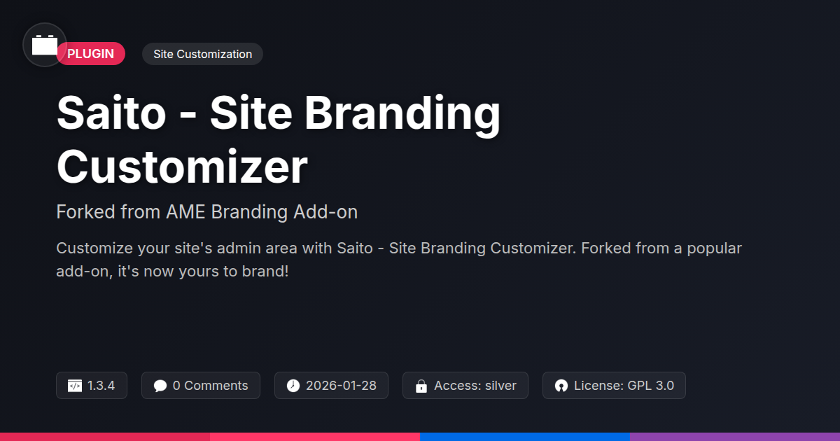 Tired of that generic backend look screaming "I haven't bothered to brand this"? Does your site's admin area look like every other site out there, a bland digital canvas that's as exciting as beige paint drying? Well, brace yourselves, because we're about to inject some much-needed personality into your life, one dashboard at a time. Introducing Saito - Site Branding Customizer, a project proudly forked from the legendary AME Branding Add-on, originally crafted by the ever-so-brilliant Janis Elsts. Think of it as giving your digital workspace a bespoke suit instead of a hand-me-down tracksuit.
