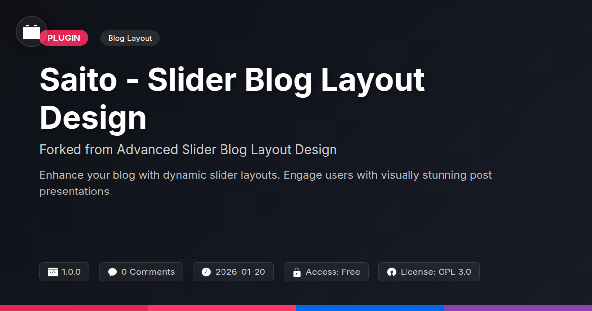 So, there you have it, folks. You’ve peered under the hood of Saito, a tool designed to rescue your blog from the clutches of mediocrity and launch it into the stratosphere of stylish content delivery. We’ve navigated the pitfalls of plain-Jane layouts, chuckled at the absurdity of bland design, and marveled at how a few well-placed sliders can turn a humble blog into a digital showstopper. For the developers among us, you know the pain of wrestling with clunky code just to achieve a basic carousel. Saito cuts through that noise, offering a playground of customization without the ensuing headache. Agencies, imagine the delight on your clients' faces when you present them with layouts so captivating, they’ll wonder if you secretly hired a team of design wizards. And to our open-source loving brethren, this is your chance to contribute to and benefit from a project that’s built on transparency, community, and a shared desire for better web experiences. We see your eye-rolls at corporate jargon, your subtle sighs at overly complex plugins, and we’ve engineered Saito to be the antithesis of all that. It’s powerful, it’s flexible, and frankly, it’s just plain fun to use. It’s about making your content not just readable, but remarkable. So, whether you're aiming to boost engagement, create a stunning portfolio, or simply make your own corner of the internet a more visually exciting place, Saito is ready to be your partner in crime. Go forth, create something beautiful, and leave those beige blog layouts in the digital dustbin where they belong. Your audience (and your sanity) will thank you.