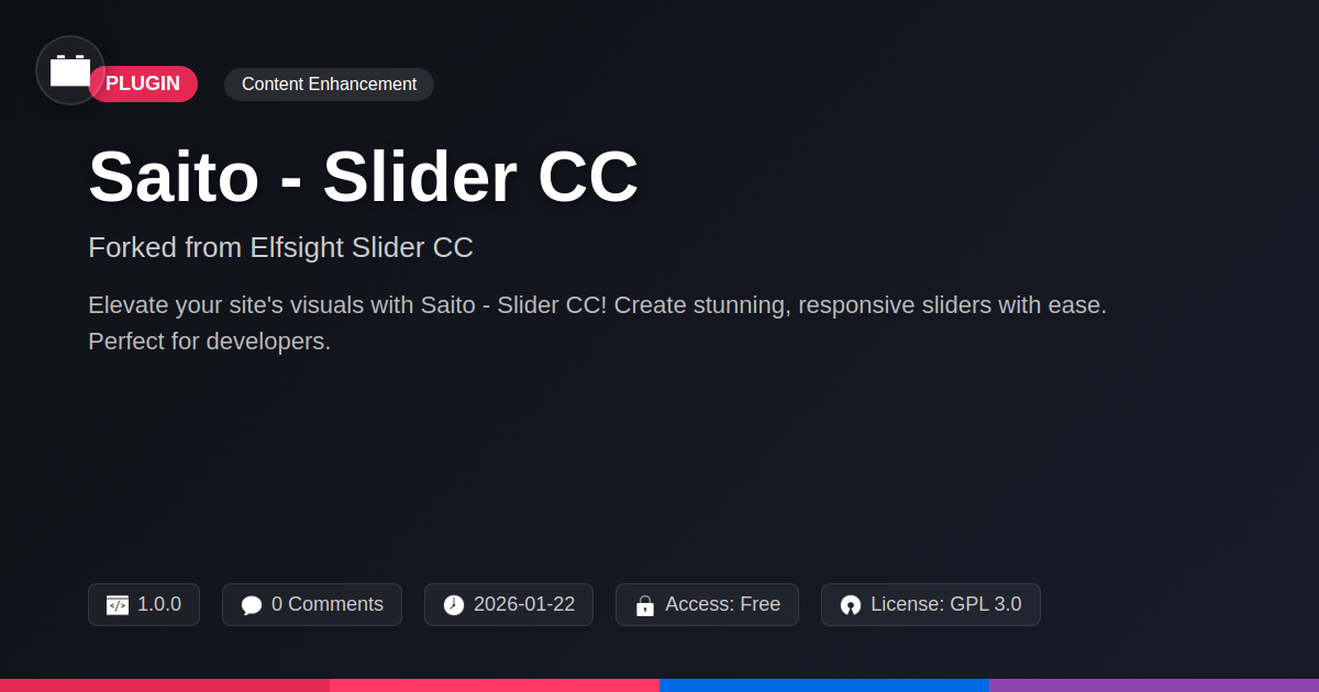 So, there you have it. Saito - Slider CC isn't just another pretty face in the crowded plugin marketplace. It's a robust, thoughtfully forked tool that respects your development prowess and your budget. We've taken a solid foundation, injected it with a heavy dose of open-source enthusiasm, and delivered a slider solution that's as powerful as it is flexible. No more convoluted settings that make you question your life choices, no more hidden fees that sneak up on you like a rogue popup ad. Just clean code, intuitive design, and the freedom to make your visuals truly shine. Think of it as your go-to for every project, from the simplest blog post to the most complex agency build. It’s the dependable workhorse that also knows how to put on a dazzling show. Whether you're a seasoned developer looking to fine-tune every animation, an agency aiming to deliver stunning client sites efficiently, or an open-source advocate who believes in the power of collaboration, Saito - Slider CC is built for you. It’s a tool that empowers, not restricts, enabling you to focus on what you do best: creating incredible digital experiences. So, go ahead, give it a spin. We think you’ll find that creating breathtaking sliders has never been this straightforward, this satisfying, or this… fun. Your audience will definitely thank you for it. And hey, maybe you'll even get a bit of that elusive free time back. Wouldn't that be something?