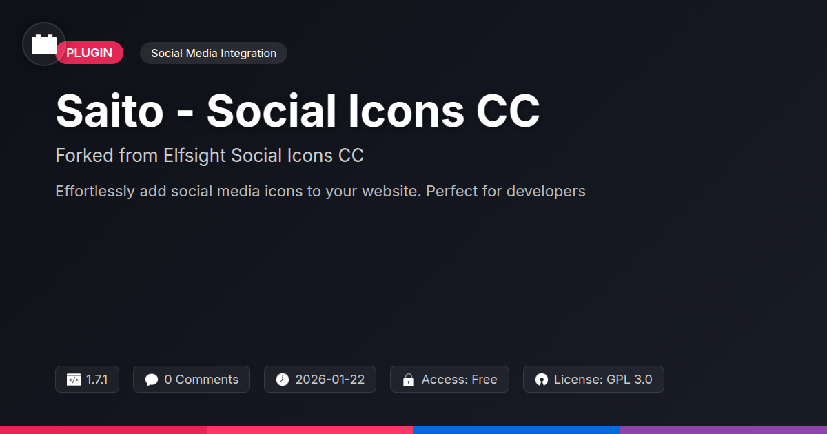Whether you're a seasoned developer looking for a reliable tool that just works, an agency aiming to impress clients with slick integrations, or an open-source advocate who appreciates elegant, community-driven solutions, Saito has got your back. It's performant, it's flexible, and it's designed to make your life easier. Stop making your visitors squint at your outdated links. It’s time to give your website the modern, engaging social presence it deserves. Go ahead, give Saito - Social Icons CC a spin. Your future, more connected self will thank you.