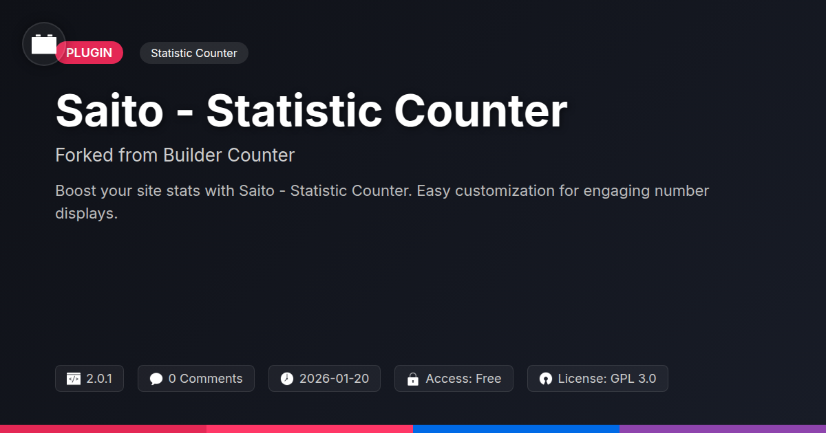 You've seen the need for better number presentation. Now, meet Saito. This is not just any counter. It's a powerful, adaptable tool. Saito is forked from a trusted source. It's built for developers and agencies. It's also perfect for FOSS enthusiasts. Forget flimsy, single-feature plugins. Saito offers sophistication. It creates striking counters. Setup is refreshingly simple. Viewing them is a delight. We'll explore its core functions. We focus on what makes Saito unique. Discover its flexibility. See how it fits your workflow. It will save you valuable development time. Get ready for counters that impress.