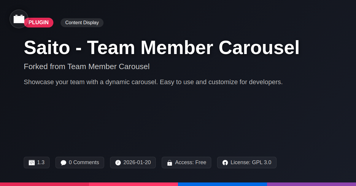 So, there you have it. If you've been staring at your 'team' page wondering if it whispers 'competent professionals' or screams 'amateur hour,' it might be time for an intervention. Saito – Team Member Carousel isn't just another plugin to clog up your site; it's a carefully crafted solution designed to let your invaluable team members shine. We've all seen those dusty, uninspired team listings that make you wonder if the people listed are even real. With Saito, you banish that possibility. You get a dynamic, engaging display that tells your visitors, 'Hey, these are the talented humans making it all happen!' For the developers tirelessly crafting digital wonders, the agencies building empires one client site at a time, and the open-source enthusiasts who champion transparency and innovation, Saito offers a blend of robust functionality and intuitive customization. It’s the kind of tool that doesn't fight you, but rather, works with you to achieve stellar results. You can tweak it to match your brand's unique flavor without needing to perform arcane rituals or consult ancient scrolls of CSS. Plus, knowing it's built on a solid foundation and plays nicely with your existing setup means less troubleshooting and more time for, well, building awesome things. In the grand tapestry of your website, your team is a crucial thread. Don't let them get lost in the lint. Give them the spotlight they deserve with a carousel that's as professional and engaging as they are. It’s a small change that can make a significant difference in how visitors perceive your credibility and approachability. So, go ahead, give your team the digital standing ovation they've earned. You won't regret it. Now, go forth and impress!