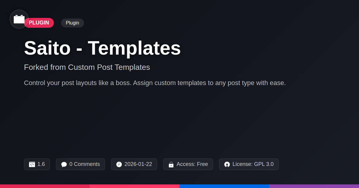 Are you tired of the endless parade of generic content areas that make your site look like it was built by a committee of beige enthusiasts? Do you dream of a digital canvas where your custom content types can truly shine, free from the shackles of one-size-fits-all layouts? Let's be honest, sticking to default templates often feels like trying to fit a square peg into a round hole, leading to frustration, wasted time, and let's not even mention the existential dread that creeps in when you see another carbon copy website. We get it. You're a developer, an agency, or maybe just an open-source evangelist who appreciates elegant solutions. You need more than just a plugin; you need a toolkit that empowers you to craft unique experiences without reinventing the wheel every single time. Enter Saito - Templates, the progeny of a seasoned solution born from a desire for greater control and flexibility. We've taken a proven foundation and polished it, ensuring it’s ready to serve your most ambitious design dreams. It's time to stop compromising and start creating. Prepare to unleash your creativity and build sites that don't just work, but wow.