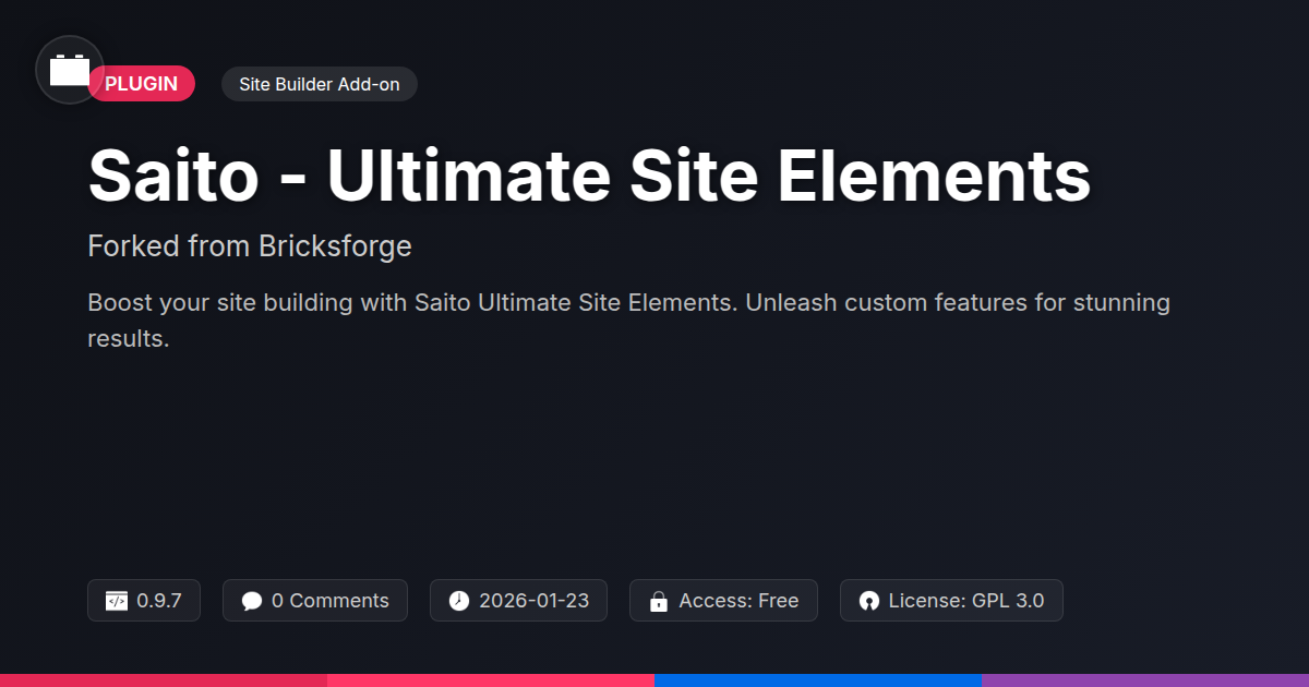 So, there you have it. Saito - Ultimate Site Elements. It’s not just another plugin; it’s a full-blown digital Swiss Army knife for anyone serious about building websites that don’t just exist, but thrive. We’ve all been there, staring at a blank canvas or a cookie-cutter template, feeling like our creative aspirations are being choked by limitations. You’re a developer, an agency owner, or just someone who appreciates elegant, powerful open-source solutions. You deserve tools that amplify your skills, not hinder them. Saito is that amplifier. It's the difference between a website that says 'hello' and one that commands attention. It's about ditching the tedious and embracing the brilliant. Remember that feeling when you finally nail that tricky bit of CSS, or when a client raves about a feature you implemented? Saito is designed to multiply those moments. It’s built for the doers, the makers, the ones who don’t settle for ‘good enough.’ So, go ahead, give your site builder the upgrade it deserves. Stop wrestling with limitations and start crafting digital experiences that are as unique and powerful as you are. Your next masterpiece is just a few clicks away.