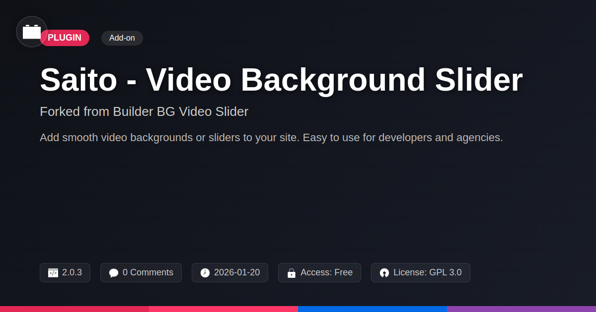 So, there you have it. Saito - Video Background Slider. It’s the digital equivalent of finding out your favorite obscure indie band just released a surprise album – delightful, unexpected, and utterly brilliant. We’ve shed light on why bland, static backgrounds are officially on the endangered species list of web design. In an era where attention spans are shorter than a gnome’s attention span at a buffet, you need tools that don't just hold your audience’s gaze but actively pull them in. Saito does just that, transforming your website from a digital pamphlet into a dynamic, immersive experience. It’s not just about pretty pictures (or, you know, videos); it’s about creating an emotional connection, telling your brand’s story with visual flair, and reducing the dreaded bounce rate to a distant memory. For the developers among us, it’s a sigh of relief – clean code, straightforward implementation, and none of the usual headaches that come with complex integrations. Agencies, prepare to wow your clients without sacrificing your sanity or your margins. And to our open-source comrades, you know the drill: robust, community-driven, and constantly improving. Saito is the intelligent, no-nonsense approach to adding video backgrounds that actually works, looks incredible, and plays nice with your existing setup. It’s time to stop settling for static and embrace the motion. Make your backgrounds talk, sing, and dance. Saito makes it happen. Now go forth and make your websites unforgettable.