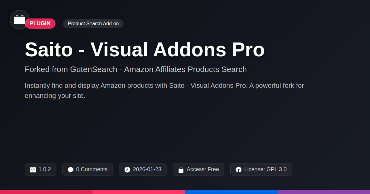 Are you tired of manually adding product links and images to your website, only to watch them look… well, a bit sad and out of place? Do you find yourself staring at stunning product pages elsewhere and thinking, “There has to be a better way to get that look and functionality onto my site”? If your answer is a resounding “YES!” then buckle up, Buttercup, because Saito - Visual Addons Pro is here to rescue your sanity and elevate your content game. We’re talking about a tool that takes the often tedious process of integrating product listings from a massive online retailer and turns it into something… dare we say… enjoyable? This isn't just another plugin; it's a fork of a solid performer, polished and enhanced for developers, agencies, and anyone who appreciates efficient, elegant solutions on their content management system. Forget the endless hours spent copy-pasting URLs, resizing images, and wrestling with clunky code snippets. Saito - Visual Addons Pro is about empowering you to build visually appealing, highly functional product showcases with the kind of ease that makes you wonder how you ever lived without it. Whether you’re meticulously crafting affiliate content, building a niche product review site, or looking to add a dash of e-commerce flair to your existing setup, this is your new best friend. Think of it as your digital toolkit’s secret upgrade, designed to make your life easier and your website look impossibly professional.