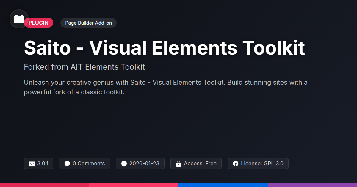 Are you tired of the same old, cookie-cutter website designs that make your online presence blend in with every other business on the internet? Do you find yourself staring at a blank canvas, wishing for a toolkit that actually helps you build something unique without breaking the bank or requiring a degree in UI design? And let's be honest, who actually enjoys wrestling with clunky interfaces just to get a decent-looking button? If you're nodding along, muttering "tell me about it," then settle in, grab your beverage of choice, and let's talk about Saito - Visual Elements Toolkit. This isn't just another page builder add-on; it's a meticulously forked evolution of a tried-and-true solution, breathing new life into the concept of visual web design for the discerning developer, the ambitious agency, and the proudly open-source enthusiast. We're talking about a powerhouse of pre-built components and customization options that frees you from the mundane and lets you focus on what truly matters: making your clients' (or your own) websites look absolutely spectacular. Forget the limitations of basic editors and the endless search for that one perfect plugin. Saito is here to streamline your workflow, inject some serious visual flair, and maybe even make you crack a smile along the way. Think of it as your digital Lego set, but with much cooler bricks and a lot less parental supervision required.