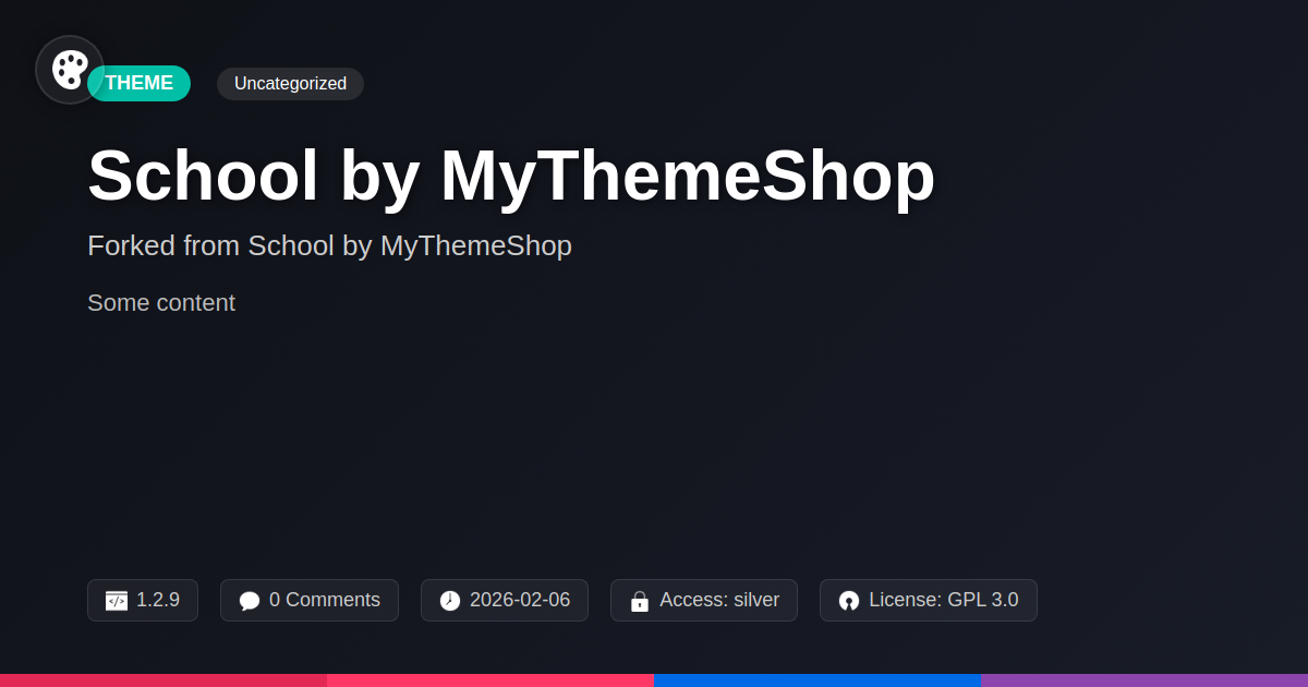 GrootMade is NOT affiliated with School by MyThemeShop or its original author. School by MyThemeShop™ is a trademark of its respective owner and use of it does not imply any endorsement or affiliation. This product has been forked under the GNU General Public License (GPL) and all non-GPL assets (such as proprietary images, fonts, and branding) have been removed. Distributing GPL-licensed code is 100% legal.