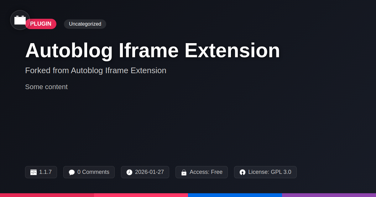 GrootMade is NOT affiliated with Autoblog Iframe Extension or its original author. Autoblog Iframe Extension™ is a trademark of its respective owner and use of it does not imply any endorsement or affiliation. This product has been forked under the GNU General Public License (GPL) and all non-GPL assets (such as proprietary images, fonts, and branding) have been removed. Distributing GPL-licensed code is 100% legal.