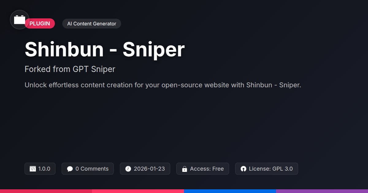So, there you have it. Shinbun - Sniper, the tool that proves AI doesn't have to be sterile, soulless, or complicated. It’s your chance to stop wrestling with writer's block like it owes you money and start churning out content that actually makes a difference. For the developers out there who’d rather debug code than brainstorm taglines, for the agencies drowning in client demands, and for the open-source enthusiasts who believe in the power of shared innovation – this is your new best friend. We're not just offering a piece of software; we're offering a pathway to reclaiming your time and supercharging your creativity. Think of it as a digital Swiss Army knife for your content needs. It’s built on a solid foundation, but it’s yours to mold, to adapt, to make truly your own. Stop letting content creation be the bottleneck that slows down your brilliant ideas. It’s time to inject some seriously smart AI into your workflow and watch your projects soar. Ready to forge your own AI and leave the content creation struggle in the dust? Dive in, experiment, and discover what you can achieve when you have a powerful AI assistant by your side.