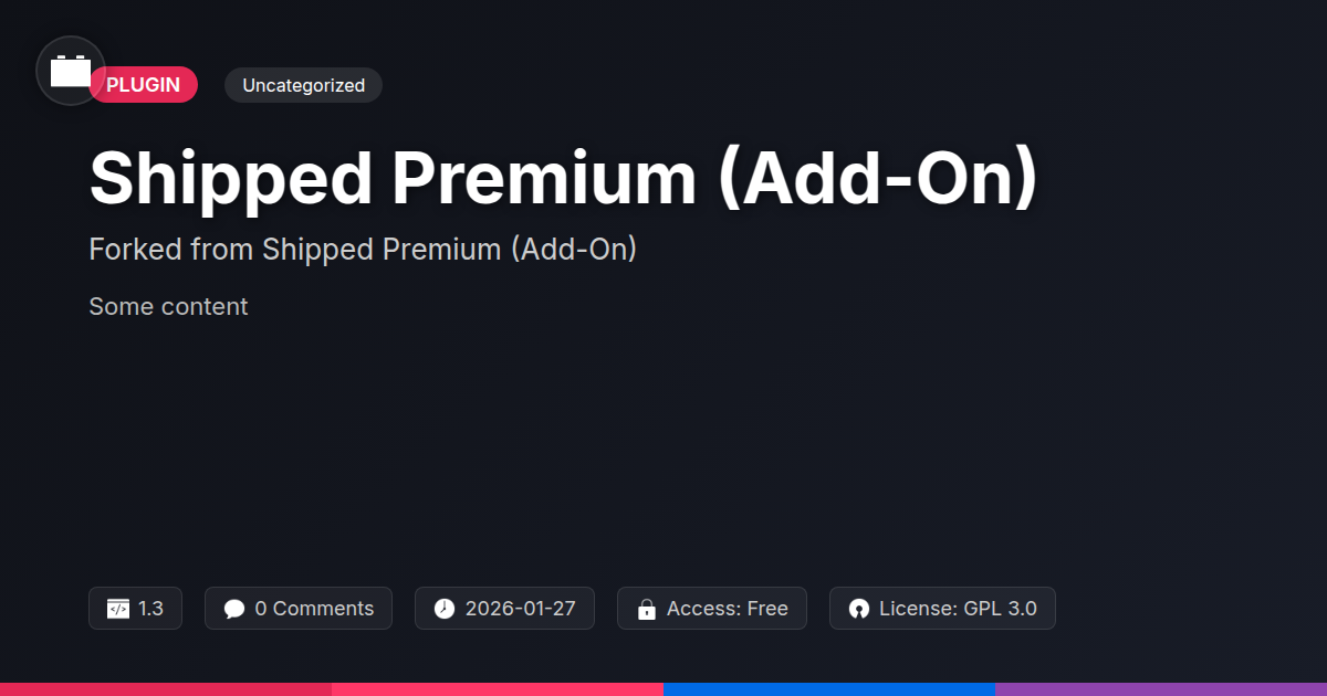 GrootMade is NOT affiliated with Shipped Premium (Add-On) or its original author. Shipped Premium (Add-On)™ is a trademark of its respective owner and use of it does not imply any endorsement or affiliation. This product has been forked under the GNU General Public License (GPL) and all non-GPL assets (such as proprietary images, fonts, and branding) have been removed. Distributing GPL-licensed code is 100% legal.