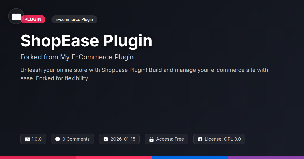 Tired of bloated e-commerce solutions that feel like they were designed by committee, for people who enjoy reading manuals more than selling things? We get it. You're a developer, an agency, or maybe just a digital alchemist who likes to get their hands dirty with open-source magic. You need a platform that respects your craft, not one that locks you into its proprietary whims. Introducing ShopEase Plugin, a project forked from the solid foundation of My E-Commerce Plugin, but with a fresh perspective and a renewed commitment to flexibility and developer freedom. Think of it as your favorite trusty toolkit, but now it’s got a few new gadgets, a shinier finish, and it’s ready to be molded into whatever magnificent online storefront you can dream up. We’re not here to reinvent the wheel; we’re here to give you a better chassis to build upon, one that doesn’t require a secret handshake or a hefty subscription fee to access its full potential. Let's dive into what makes this forked gem a must-have for anyone serious about building exceptional online experiences, without the usual corporate fanfare.
