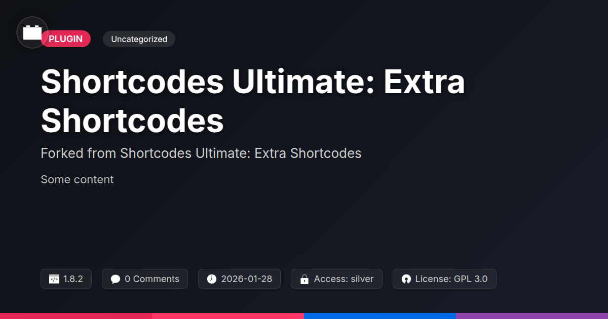 GrootMade is NOT affiliated with Shortcodes Ultimate: Extra Shortcodes or its original author. Shortcodes Ultimate: Extra Shortcodes™ is a trademark of its respective owner and use of it does not imply any endorsement or affiliation. This product has been forked under the GNU General Public License (GPL) and all non-GPL assets (such as proprietary images, fonts, and branding) have been removed. Distributing GPL-licensed code is 100% legal.