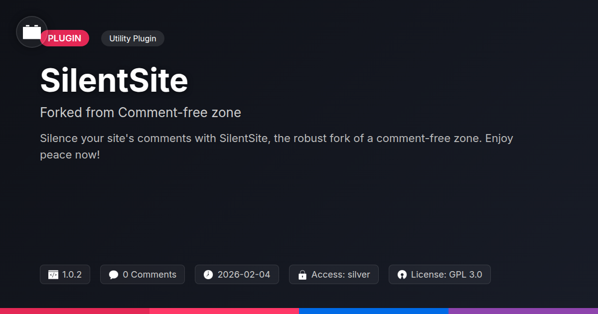 So, there you have it. In the grand theater of the internet, sometimes the most elegant performance isn’t a standing ovation of comments, but a hushed reverence for a site that’s clean, focused, and free from the digital din. For developers and agencies who are constantly juggling client demands, fighting off spam, and striving for that perfect balance of form and function, SilentSite offers a welcome respite. It’s not about silencing opinions; it’s about quieting the noise that distracts from your core message and your site’s performance. This plugin, born from the solid foundation of a well-loved 'comment-free zone' project, brings a streamlined, robust solution to a problem that plagues far too many websites. Think of it as giving your website a bit of digital breathing room. When every millisecond of load time counts, and every bit of user attention is precious, why dedicate resources to managing a feature that often brings more headaches than happiness? SilentSite is your ally in this quest for digital serenity. It’s a testament to the beauty of simplicity and the power of open-source collaboration. It empowers you to take back control, to craft a user experience that prioritizes clarity and speed, and to simply… enjoy the quiet. So, if you’re tired of the digital chatter and yearn for a cleaner, more efficient online presence, it's time to consider the eloquent silence that SilentSite can bring. Your site, and perhaps even your sanity, will thank you.
