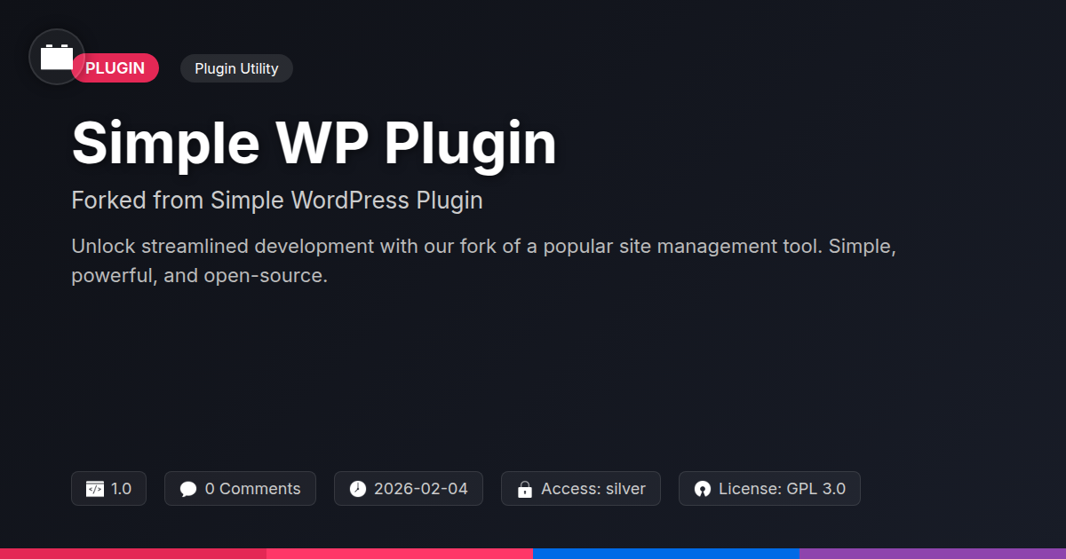 GrootMade is NOT affiliated with Simple WordPress Plugin or its original author. Simple WordPress Plugin™ is a trademark of its respective owner and use of it does not imply any endorsement or affiliation. This product has been forked under the GNU General Public License (GPL) and all non-GPL assets (such as proprietary images, fonts, and branding) have been removed. Distributing GPL-licensed code is 100% legal.