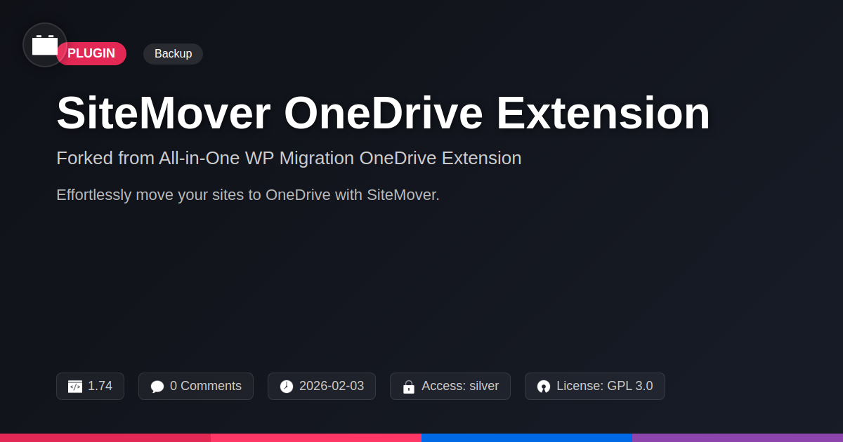 GrootMade is NOT affiliated with All-in-One WP Migration OneDrive Extension or its original author. All-in-One WP Migration OneDrive Extension™ is a trademark of its respective owner and use of it does not imply any endorsement or affiliation. This product has been forked under the GNU General Public License (GPL) and all non-GPL assets (such as proprietary images, fonts, and branding) have been removed. Distributing GPL-licensed code is 100% legal.