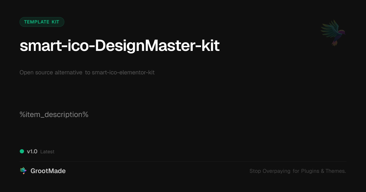 GrootMade is NOT affiliated with smart-ico-elementor-kit or its original author. smart-ico-elementor-kit™ is a trademark of its respective owner and use of it does not imply any endorsement or affiliation. This product has been forked under the GNU General Public License (GPL) and all non-GPL assets (such as proprietary images, fonts, and branding) have been removed. Distributing GPL-licensed code is 100% legal.