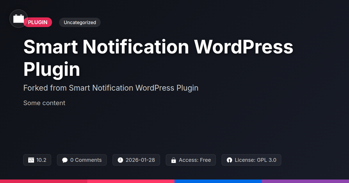 GrootMade is NOT affiliated with Smart Notification WordPress Plugin or its original author. Smart Notification WordPress Plugin™ is a trademark of its respective owner and use of it does not imply any endorsement or affiliation. This product has been forked under the GNU General Public License (GPL) and all non-GPL assets (such as proprietary images, fonts, and branding) have been removed. Distributing GPL-licensed code is 100% legal.