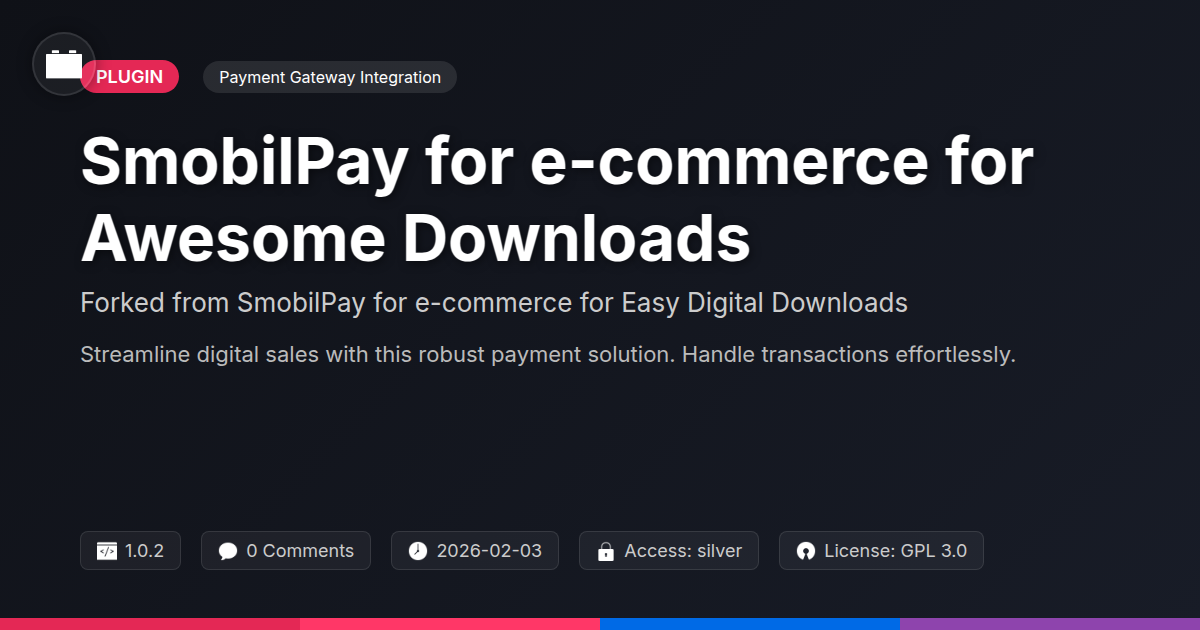 GrootMade is NOT affiliated with SmobilPay for e-commerce for Easy Digital Downloads or its original author. SmobilPay for e-commerce for Easy Digital Downloads™ is a trademark of its respective owner and use of it does not imply any endorsement or affiliation. This product has been forked under the GNU General Public License (GPL) and all non-GPL assets (such as proprietary images, fonts, and branding) have been removed. Distributing GPL-licensed code is 100% legal.