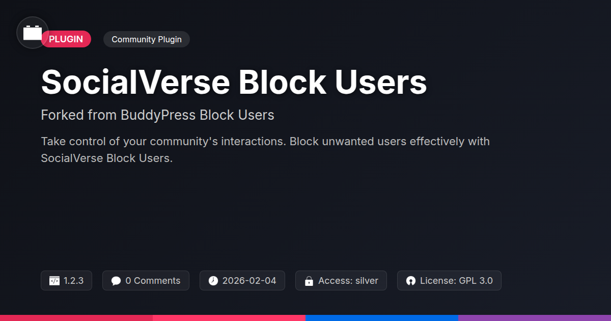 So, there you have it. The digital world, much like the physical one, comes with its share of characters you’d rather not interact with. And just like a sturdy fence around your property or a polite but firm bouncer at your favorite establishment, the ability to block users is less about being anti-social and more about being pro-sanity. SocialVerse Block Users isn't just another plugin; it’s your digital peacekeeper, your guardian of good vibes, and frankly, a lifesaver for anyone trying to build or maintain a thriving online community. It’s the digital equivalent of hitting the mute button on that one person who always dominates the conversation with unsolicited advice on crypto mining or their neighbor’s peculiar gardening habits. For the developers and agencies out there, this is a clean, efficient tool that solves a real problem for your clients, allowing them to focus on growth and engagement, not on wrangling digital pests. And for the open-source aficionados, it’s a testament to how community-driven development can provide elegant solutions to common challenges. It’s about reclaiming your digital space, ensuring that your community remains a place for constructive interaction and genuine connection, not a battleground for the perpetually-annoyed. Stop letting a few disruptive voices drown out the many positive ones. Empower yourself, empower your community, and embrace the serenity that comes with a well-managed digital environment. Because at the end of the day, we’re all just trying to enjoy our online hangouts without unexpected, unwanted interruptions. Grab it, implement it, and enjoy the sweet, sweet silence from the digital miscreants.