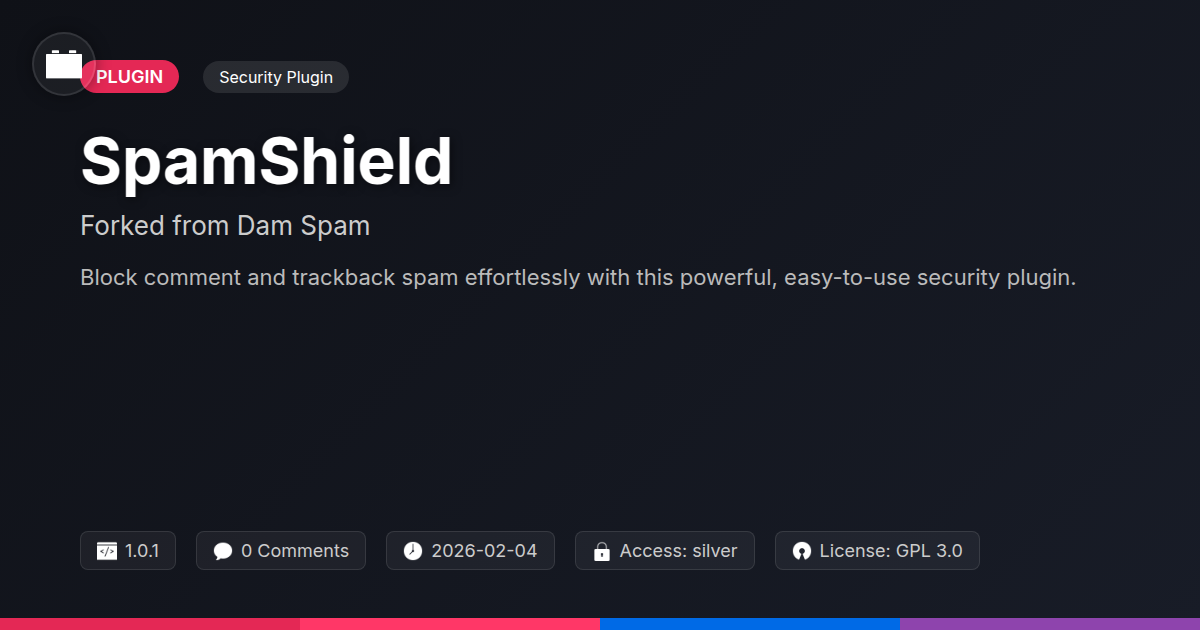 Your digital space deserves purity. Are you tired of spam's relentless assault? Imagine a cleaner site. Picture faster loading times. Envision enhanced security. This is your freedom from the spam headache. Developers, you need robust tools. Agencies, your clients demand reliable solutions. Open-source advocates, champion community innovation. Adopting this shield is an investment. It upgrades your online presence. It safeguards its integrity. We offer a powerful, reliable solution. It's built on community strength. Its effectiveness is proven. This is more than just a plugin. It's your path to a healthier web. Take the next step now. Experience the difference firsthand. Join a community that values a cleaner web. Reclaim your online space. This shield definitively solves your spam woes. It provides the peace of mind you deserve.
