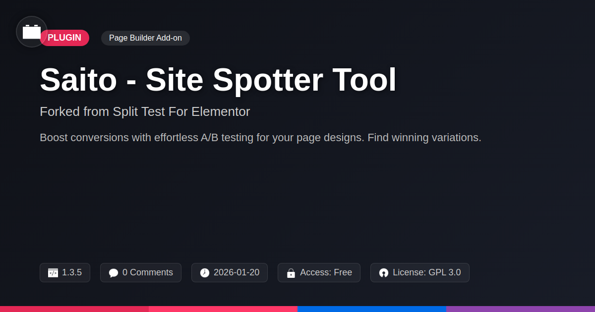 Tired of crossing your fingers and hoping for the best? Meet Saito - Site Spotter Tool. It's your new go-to for winning the conversion game. Think of it as your personal website mad scientist lab. We took a solid foundation from a popular testing plugin and sharpened its focus.