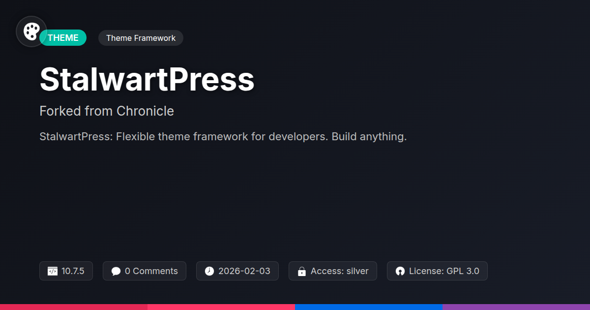 Tired of themes that feel like they were designed by committee to please everyone and end up pleasing no one? Ever wished you could just grab a solid, flexible foundation and actually make it your own without wrestling with bloated code or opaque proprietary locks? Well, buckle up, buttercups, because StalwartPress is here to rescue your sanity. Imagine a theme that’s not just a pretty face, but a finely tuned engine, ready to be bolted onto any chassis you dream up. Think of it as the chassis from your favorite performance car, now available for you to customize to your heart's content, without any of those pesky manufacturer warranties you never actually use. We’ve taken an already excellent base, chopped out the unnecessary fluff, and poured in pure, unadulterated potential. This isn't just another theme; it's a statement. A statement that you, the developer, the agency, the open-source aficionado, are in charge. No more fighting against the current; let’s build something that actually moves with you. Forget those cookie-cutter templates that scream 'I gave up.' StalwartPress is for those who roll up their sleeves, appreciate elegant code, and understand that the best tools are those that empower creativity, not stifle it. Ready to build something that doesn't just look good, but is good, from the ground up?