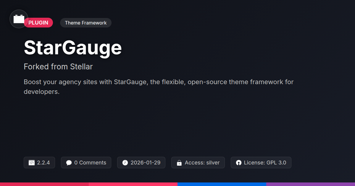 This isn't just another theme framework; it's a declaration of independence for developers. It's the nod to the open-source community that says, 'We believe in a better way.' So, if you're ready to stop compromising, start building with the freedom you deserve, and maybe even have a little fun doing it, StarGauge is waiting. Your clients will thank you, your sanity will thank you, and frankly, your code will sing. Embrace the power, embrace the freedom, and let StarGauge be the launchpad for your next digital triumph. It’s time to build better, build smarter, and build yours.
