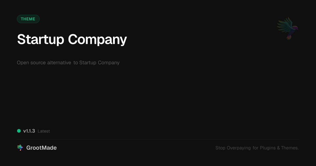 GrootMade is NOT affiliated with Startup Company or its original author. Startup Company™ is a trademark of its respective owner and use of it does not imply any endorsement or affiliation. This product has been forked under the GNU General Public License (GPL) and all non-GPL assets (such as proprietary images, fonts, and branding) have been removed. Distributing GPL-licensed code is 100% legal.