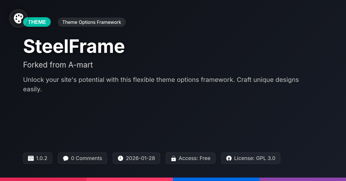 Unleash your inner web wizard with SteelFrame. This theme framework is forked from the stellar base of A-mart. Forget developer drag. Embrace a tool for crafting stunning websites. Building should feel fun. SteelFrame offers a robust foundation. It respects your time. It fuels your creativity. This is more than a pretty interface. It's packed with features. Developers will nod. Clients will beam. Ever stared at a customization screen? Wondered where to begin? SteelFrame changes that. It's the secret ingredient your agency needs. Deliver exceptional results. Avoid development heartburn. Build faster. Build smarter. Build with flair. Enjoy a streamlined interface. Intuitive controls prevent monitor tantrums. It's developer-focused. Clean code and hooks invite tinkering. Performance is optimized. Sites load with lightning speed. Enjoy . From minimalist chic to bold dynamism, craft your vision.