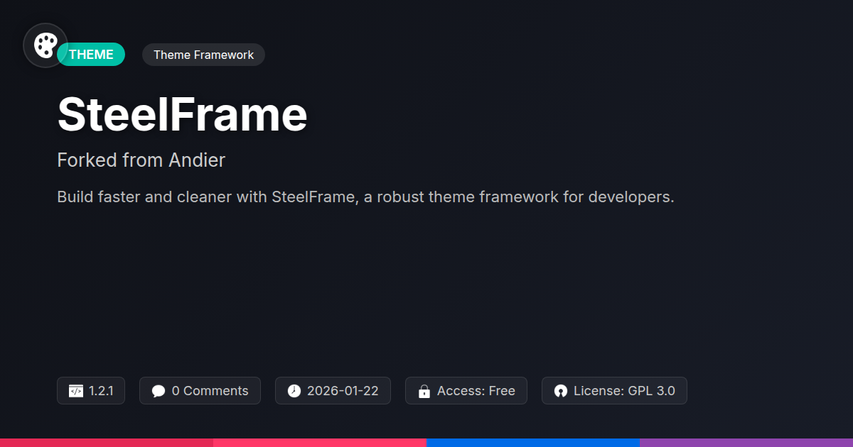 Tired of themes that feel like wrestling a greased pig in a slippery suit? Does the thought of digging through miles of bloated code make you want to retreat to a digital cave and code only by candlelight? We get it. As developers, we crave control, speed, and the kind of flexibility that doesn't make us want to question every life choice that led us here. What if there was a base that didn't feel like a leaky sieve, but a finely tuned engine, ready to be customized to your wildest specifications? Enter SteelFrame. Forked from a legend and polished to a gleam, SteelFrame is not just another theme framework; it's your new favorite development playground. Forget the pre-packaged limitations and the “it’s-a-feature-not-a-bug” excuses. This is about empowering you, the builder, the innovator, the one who actually knows what they’re doing. Whether you're a solo dev building a masterpiece or an agency churning out client sites like a well-oiled machine, you deserve a foundation that's as robust and adaptable as your own skills. This isn't about flashy demos that fall apart under the slightest pressure; it's about solid architecture, lightning-fast performance, and the freedom to build without constraint. Ready to stop fighting your tools and start creating something truly amazing?