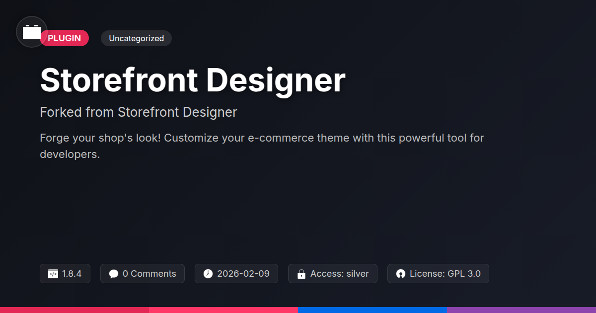 GrootMade is NOT affiliated with Storefront Designer or its original author. Storefront Designer™ is a trademark of its respective owner and use of it does not imply any endorsement or affiliation. This product has been forked under the GNU General Public License (GPL) and all non-GPL assets (such as proprietary images, fonts, and branding) have been removed. Distributing GPL-licensed code is 100% legal.