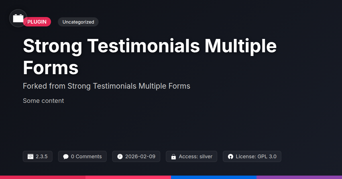 GrootMade is NOT affiliated with Strong Testimonials Multiple Forms or its original author. Strong Testimonials Multiple Forms™ is a trademark of its respective owner and use of it does not imply any endorsement or affiliation. This product has been forked under the GNU General Public License (GPL) and all non-GPL assets (such as proprietary images, fonts, and branding) have been removed. Distributing GPL-licensed code is 100% legal.
