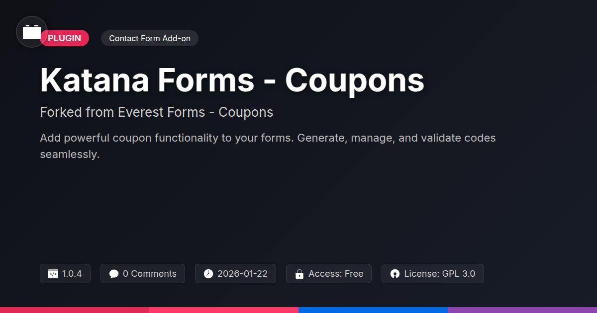 So, there you have it. You’ve delved into the nitty-gritty of how adding a robust coupon system to your forms isn't just a feature; it's a strategic maneuver. For those of you who wield keyboards like lightsabers and build digital experiences that make users weep tears of joy (or at least click 'add to cart' with glee), this tool offers a potent blend of control and convenience. No more wrestling with convoluted workarounds or settling for forms that look like they were designed by a committee of beige enthusiasts. This extension injects a much-needed dose of marketing savvy directly into your data collection pipelines. Think of the possibilities: turning a simple contact form into a lead-nurturing powerhouse, or an event registration into a revenue-generating machine. It's about giving your clients, or yourself, the power to incentivize, reward, and ultimately, convert. And for the purists, the open-source aficionados who believe in transparency and freedom? This is your playground. A fork from a solid foundation, giving you the liberty to adapt, expand, and innovate without being shackled by proprietary chains. It’s not just about offering discounts; it’s about crafting smarter, more persuasive user journeys. So, if you're ready to elevate your form game from functional to phenomenal, ditch the drab and embrace the dynamic. Your future, highly converting, client-pleasing forms await.