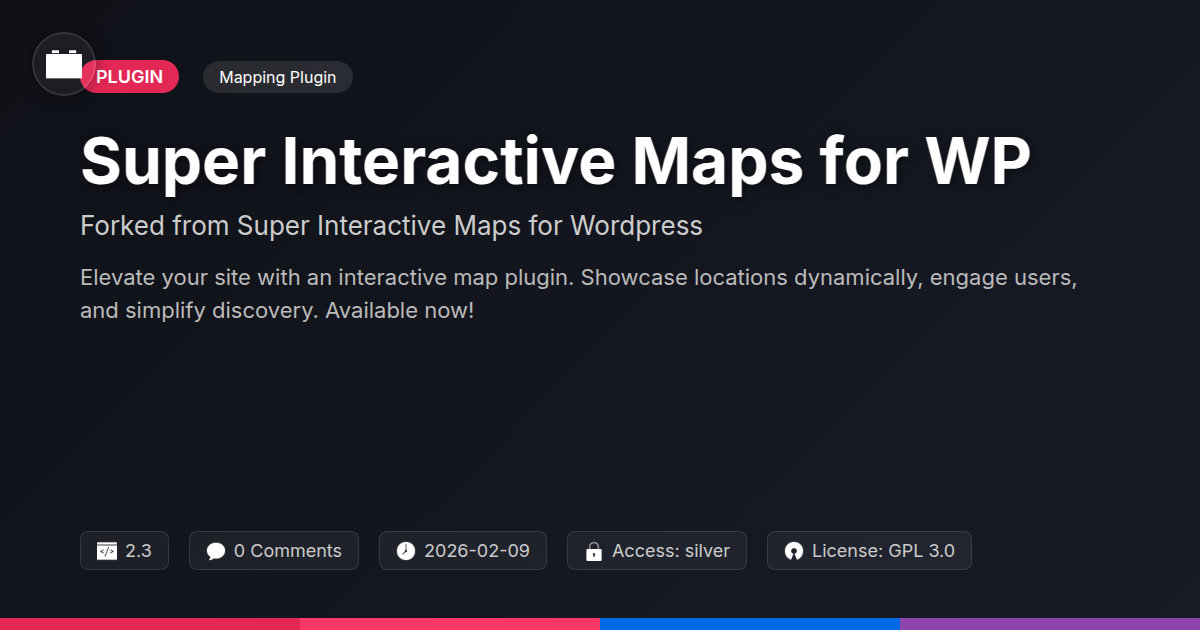 GrootMade is NOT affiliated with Super Interactive Maps for Wordpress or its original author. Super Interactive Maps for Wordpress™ is a trademark of its respective owner and use of it does not imply any endorsement or affiliation. This product has been forked under the GNU General Public License (GPL) and all non-GPL assets (such as proprietary images, fonts, and branding) have been removed. Distributing GPL-licensed code is 100% legal.