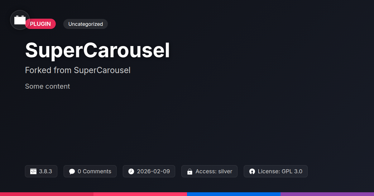 GrootMade is NOT affiliated with SuperCarousel or its original author. SuperCarousel™ is a trademark of its respective owner and use of it does not imply any endorsement or affiliation. This product has been forked under the GNU General Public License (GPL) and all non-GPL assets (such as proprietary images, fonts, and branding) have been removed. Distributing GPL-licensed code is 100% legal.