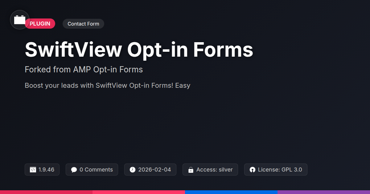 Are you tired of your site's conversion rates feeling like a broken record player, stuck on repeat with the same old tune? Does the thought of wrestling with complex code to get a simple email capture form make you want to throw your keyboard out the window? If you're a developer who values efficiency, an agency owner who thrives on client results, or an open-source enthusiast who believes in the power of community-driven innovation, then you've stumbled upon something that might just tickle your fancy. We all know that building a successful online presence isn't just about aesthetics; it's about connecting with your audience, building your list, and ultimately, making those sweet, sweet conversions happen. But let's be honest, sometimes the tools we have at our disposal feel more like intricate puzzles than helpful aids. Enter SwiftView Opt-in Forms – a delightful little solution, forked with love and engineered for speed, designed to inject some serious life into your lead generation efforts without requiring a Ph.D. in rocket science or a direct line to a wizard. Think of it as your express lane to better engagement, minus the usual traffic jams. We’re talking about a tool that understands the developer's need for clean code and flexibility, the agency's demand for powerful, yet easy-to-manage, solutions, and the open-source community’s appreciation for transparency and ongoing development. Get ready to say goodbye to clunky interfaces and hello to streamlined, high-performance opt-in forms that just work. This isn't just another plugin; it's a smarter way to capture leads, built for those who appreciate a well-crafted, community-backed solution.