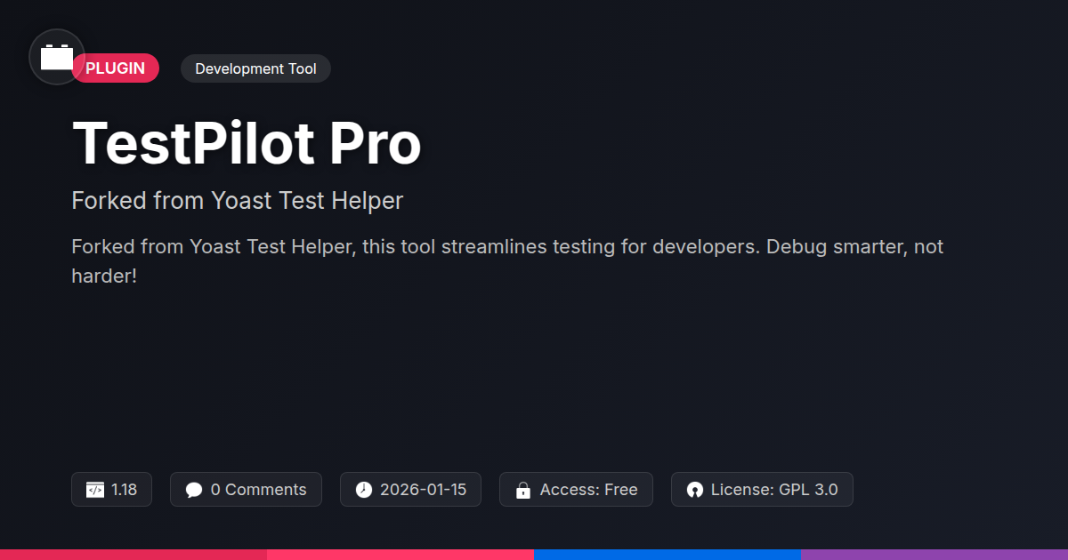 GrootMade is NOT affiliated with Yoast Test Helper or its original author. Yoast Test Helper™ is a trademark of its respective owner and use of it does not imply any endorsement or affiliation. This product has been forked under the GNU General Public License (GPL) and all non-GPL assets (such as proprietary images, fonts, and branding) have been removed. Distributing GPL-licensed code is 100% legal.