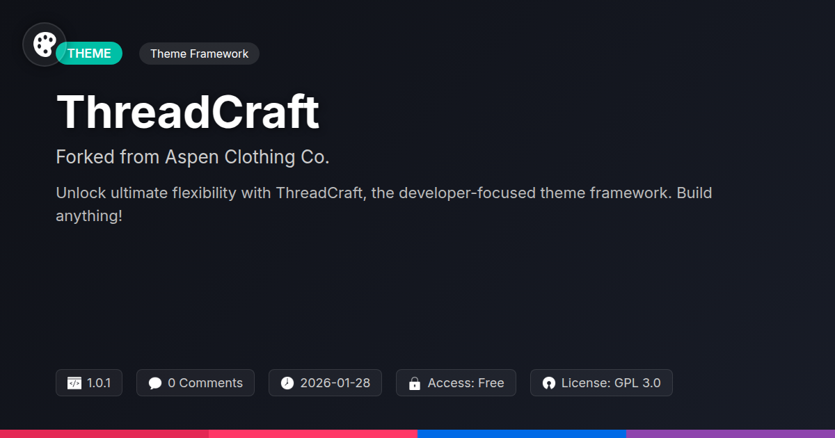 So, there you have it. ThreadCraft. It’s more than just a theme framework; it’s a statement. A statement that developers deserve better, that agencies thrive on flexibility, and that the heart of true innovation beats in the open. You’ve heard the tales of its origins, seen the powerhouse features packed into its lean frame, and understood why it’s the secret weapon you didn’t know you needed to conquer client projects. We’ve chuckled at the woes of restrictive themes and celebrated the liberating embrace of open-source ideals. ThreadCraft, born from a legacy of quality and forged with developer-first intentions, offers you the reins to build, innovate, and differentiate. It’s the solid ground from which you can launch your most ambitious digital creations, free from the shackles of proprietary limitations. Think of it as the well-tuned engine for your custom-built digital vehicle – all the essential power, none of the unnecessary fluff. Whether you’re a solo dev crafting unique digital experiences or an agency aiming to deliver unparalleled value, ThreadCraft is engineered to elevate your craft. It’s about reclaiming control, about building with precision, and about contributing to a more open and collaborative digital landscape. So, stop settling for 'good enough'. Embrace the power, the freedom, and the sheer unadulterated potential that ThreadCraft offers. Your next masterpiece awaits its robust foundation. Go forth and build brilliantly.