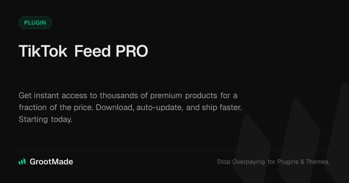 GrootMade is NOT affiliated with TikTok Feed PRO or its original author. TikTok Feed PRO™ is a trademark of its respective owner and use of it does not imply any endorsement or affiliation. This product has been forked under the GNU General Public License (GPL) and all non-GPL assets (such as proprietary images, fonts, and branding) have been removed. Distributing GPL-licensed code is 100% legal.