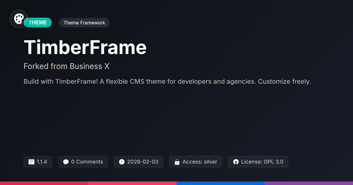 Let's talk about heritage. TimberFrame isn't born in a vacuum. It's a thoughtful evolution, a 'fork' of a highly respected foundation. Now, in the open-source universe, 'fork' isn't a dirty word. It means a stable starting point. It means inheriting proven strengths. But more importantly, it grants the freedom to innovate. TimberFrame's core philosophy is simple: empower you. You get control. You get flexibility. No more fighting a theme that dictates every pixel. We poke fun at those restrictive walled gardens. TimberFrame is for those who appreciate solid code. It's for developers, agencies, and open-source lovers. It’s a robust codebase you can actually work with. Think beyond just 'business' sites. Its adaptability stretches far.