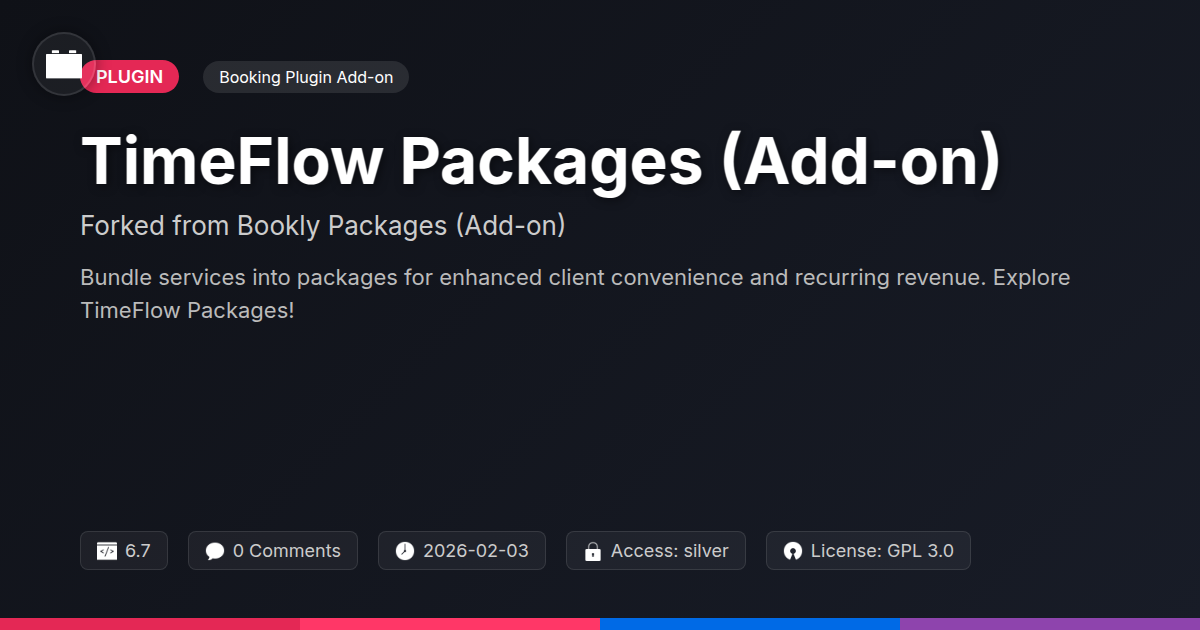 Tired of clients nickel-and-diming their way through your services like they're at a buffet, picking only the priciest appetizer and skipping the main course? Do you dream of a world where clients preemptively bundle their appointments, saving you the heartache of constant, individual scheduling battles? Well, buckle up, buttercups, because your wish just got granted. Introducing TimeFlow Packages, the ingenious add-on that takes the brilliant framework of a beloved booking system and injects it with the intoxicating power of pre-paid bundles. This isn't just about selling services; it's about selling convenience, value, and a recurring revenue stream that'll make your accountant do a happy dance. We're talking about turning those sporadic single bookings into committed package deals, freeing up your time and boosting your bottom line. So, if you're a developer looking to offer your clients a more robust booking solution, an agency aiming to impress with comprehensive tools, or just a lover of well-crafted, open-source inspired additions to your favorite web platform, this is your moment. Get ready to streamline your operations and delight your users with the magic of bundled bookings. Let's dive into how this gem can revolutionize your appointment management.