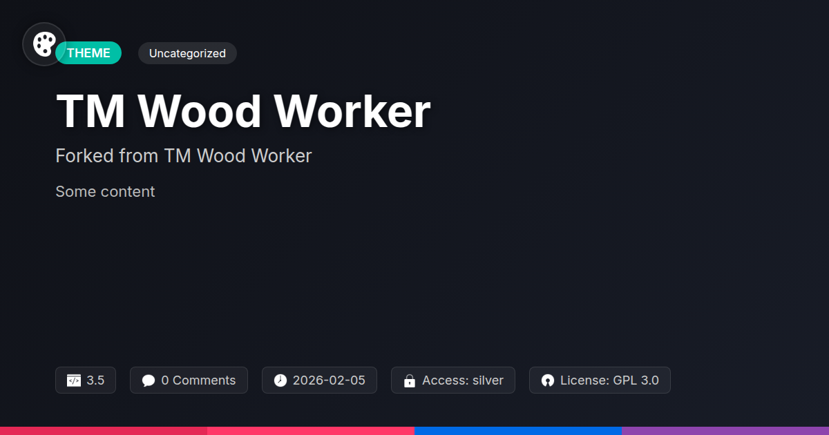 GrootMade is NOT affiliated with TM Wood Worker or its original author. TM Wood Worker™ is a trademark of its respective owner and use of it does not imply any endorsement or affiliation. This product has been forked under the GNU General Public License (GPL) and all non-GPL assets (such as proprietary images, fonts, and branding) have been removed. Distributing GPL-licensed code is 100% legal.