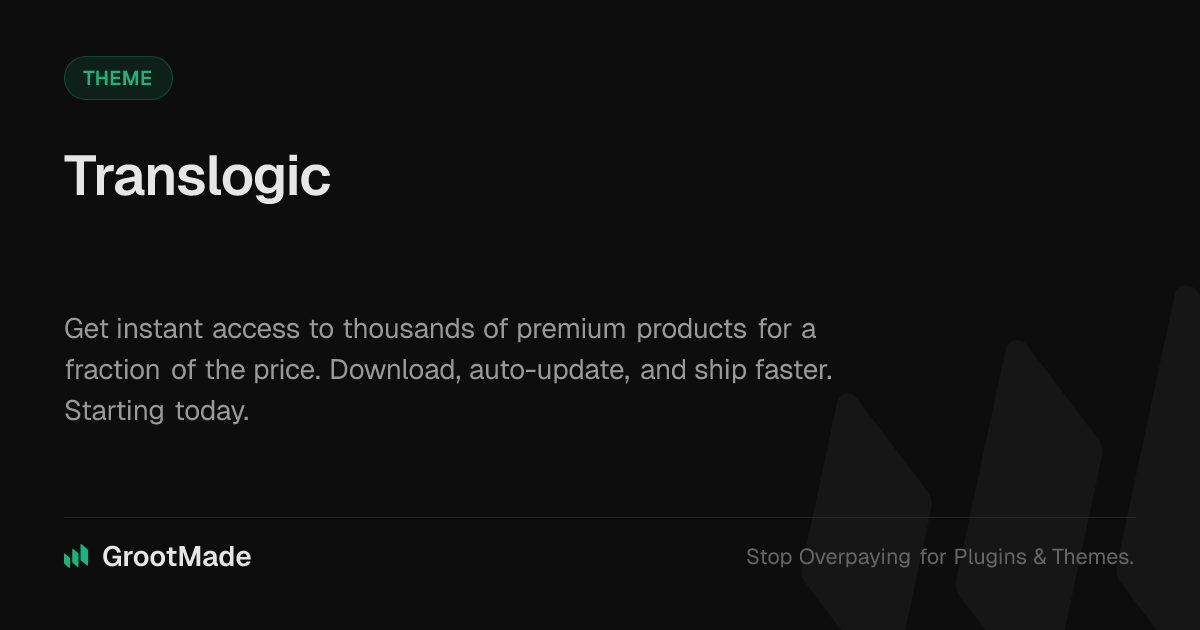 GrootMade is NOT affiliated with Translogic or its original author. Translogic™ is a trademark of its respective owner and use of it does not imply any endorsement or affiliation. This product has been forked under the GNU General Public License (GPL) and all non-GPL assets (such as proprietary images, fonts, and branding) have been removed. Distributing GPL-licensed code is 100% legal.