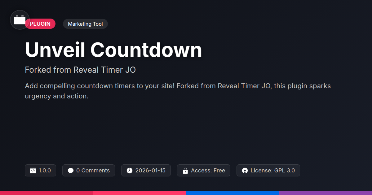 So there you have it – a tool that understands the delicate dance between making your audience tick with anticipation and making your own development process a smooth waltz. Unveil Countdown isn't just another plugin; it’s a testament to the power of community-driven innovation, offering a robust, flexible, and frankly, rather good-looking solution to the age-old problem of time-sensitive offers. We've explored how the subtle art of urgency can transform visitor behavior, turning passive browsers into active participants. More importantly, we’ve seen how Unveil Countdown sidesteps the usual pitfalls of clunky interfaces and rigid design, providing a platform that’s both powerful for seasoned developers and intuitive enough for almost anyone looking to add that extra spark.