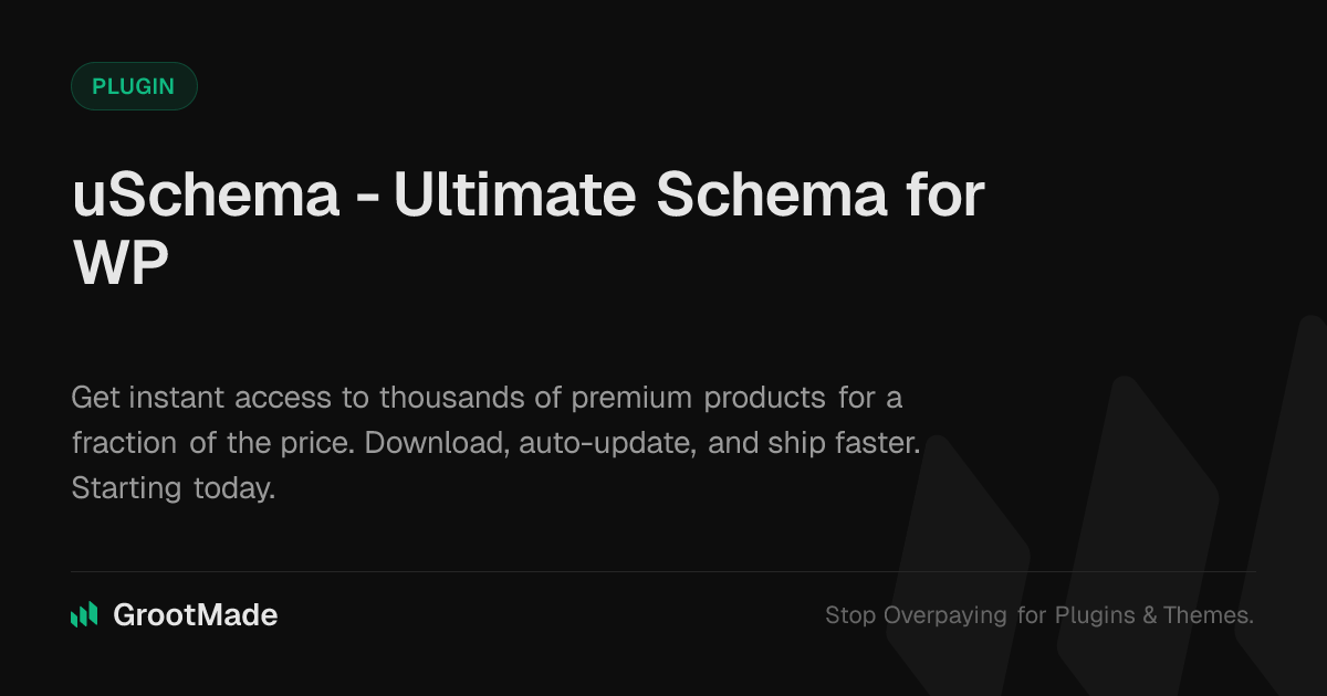 GrootMade is NOT affiliated with uSchema - Ultimate Schema for WordPress or its original author. uSchema - Ultimate Schema for WordPress™ is a trademark of its respective owner and use of it does not imply any endorsement or affiliation. This product has been forked under the GNU General Public License (GPL) and all non-GPL assets (such as proprietary images, fonts, and branding) have been removed. Distributing GPL-licensed code is 100% legal.