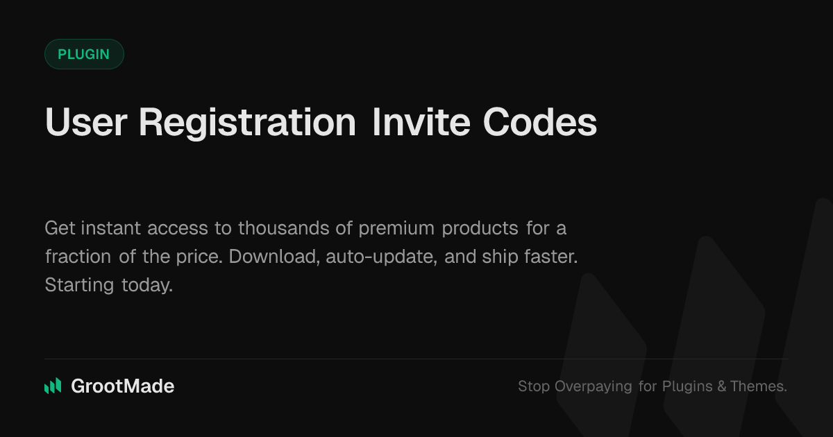 GrootMade is NOT affiliated with User Registration Invite Codes or its original author. User Registration Invite Codes™ is a trademark of its respective owner and use of it does not imply any endorsement or affiliation. This product has been forked under the GNU General Public License (GPL) and all non-GPL assets (such as proprietary images, fonts, and branding) have been removed. Distributing GPL-licensed code is 100% legal.