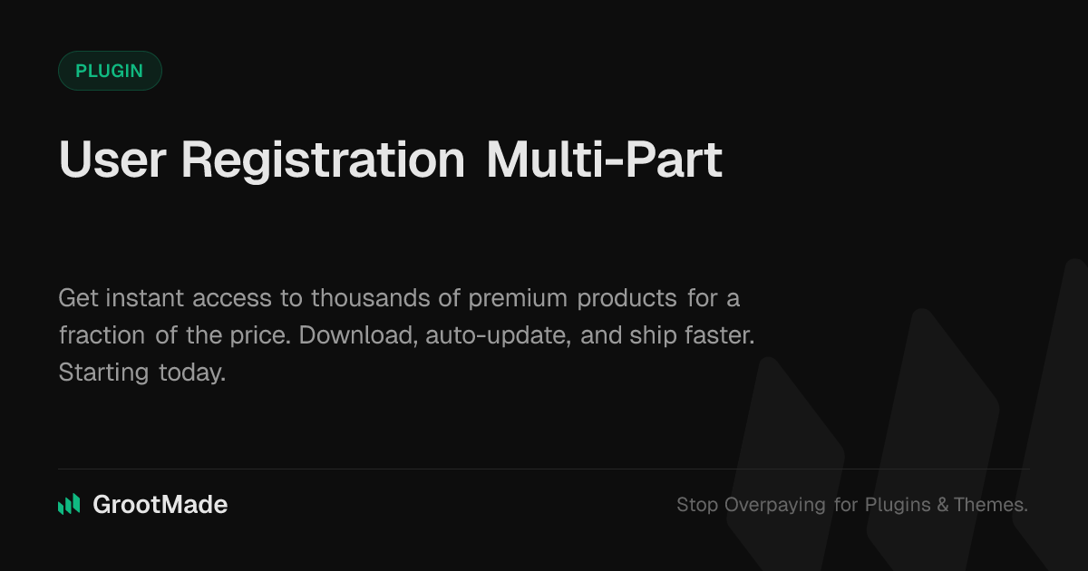 GrootMade is NOT affiliated with User Registration Multi-Part or its original author. User Registration Multi-Part™ is a trademark of its respective owner and use of it does not imply any endorsement or affiliation. This product has been forked under the GNU General Public License (GPL) and all non-GPL assets (such as proprietary images, fonts, and branding) have been removed. Distributing GPL-licensed code is 100% legal.