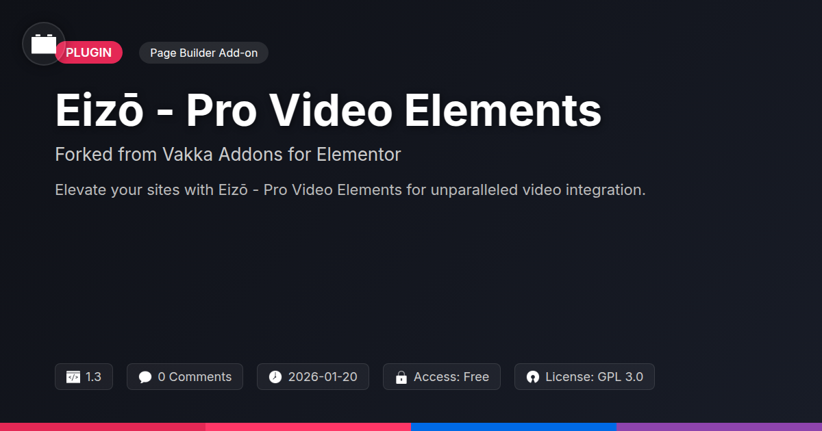 So, there you have it. You've navigated the labyrinth of digital design, battled the bland, and emerged victorious with Eizō - Pro Video Elements. It’s not just another add-on; it’s your new best friend when you want to make websites sing, dance, and generally be more impressive than a cat wearing a tiny hat. We’ve seen how Eizō takes the robust foundation of a beloved toolset and injects it with a fresh perspective, geared specifically for those who speak fluent code and appreciate a well-crafted digital experience. Whether you’re a solo developer sweating over client demands, an agency that needs to churn out showstoppers, or a proud advocate for all things open and magnificent, Eizō is your ticket to visual domination.